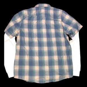 Size XL/14y mew with tags, but see last photo something spilled on the shirt. At first glance you don’t see it unless you know it is there. Shirt sleeves are a thermal material but the shirt is a light soft 100% Cotton material. Very breathable. The colors are Jean blue, sage and khaki color.