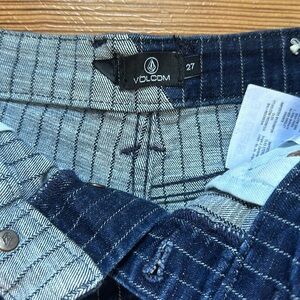 Excellent condition, gently worn Stretchy denim material Subtle pinstripe design Cuffed at bottom
