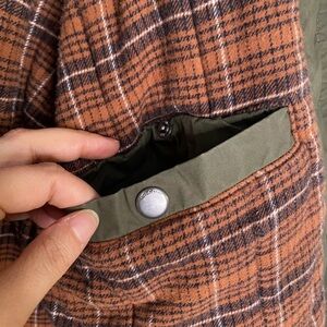 Volcom Hooded Flannel Lined Jacket Green And Orange Field Style Size Medium