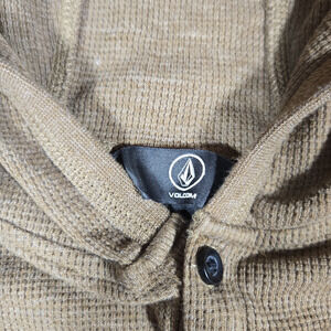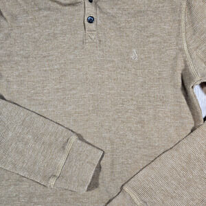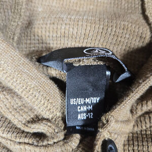 Volcom Hoodie Boys Size 10Y Medium Brown Waffle Knit Henley Pullover Thermal Top