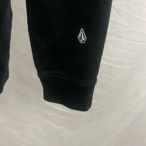 This Volcom hoodie is the perfect addition to any skate or surf lover's wardrobe. With a solid black color and big logo accent, it features a drawstring closure, crew neck, and long sleeves with a hooded design. The size small sweatshirt is made with regular fit and is suitable for all seasons, including winter, summer, fall, and spring.