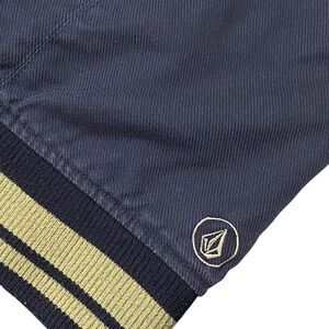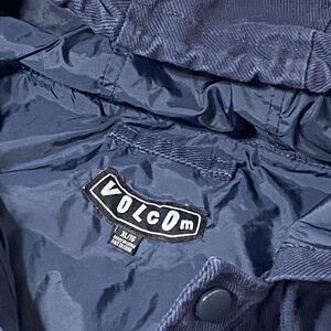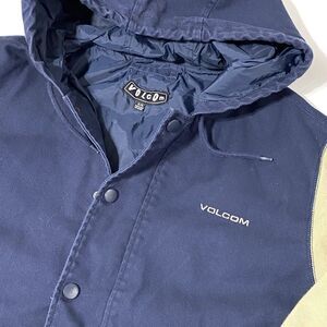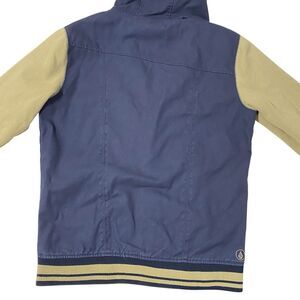 Volcom Jacket Men XL Blue Tan Bomber Varsity Letterman Snap Hoodie Skate Cotton