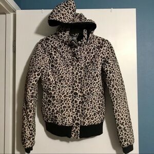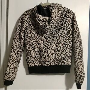 Volcom Leopard Animal Print Puffer Jacket with Hood & Pockets Zip Up Size Medium