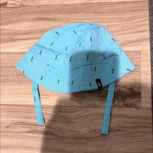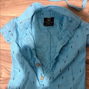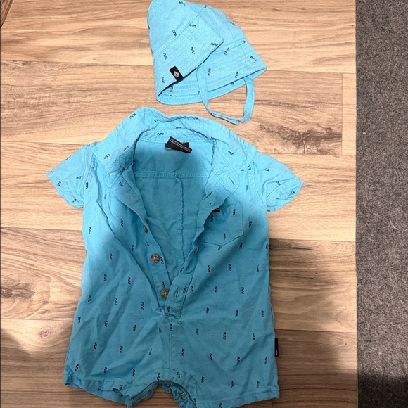 Stylish light blue shirt with button-up front. Includes matching hat.