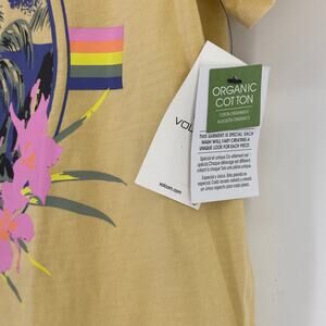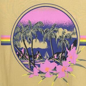 Volcom Lock It Up Retro Hawaiian Print T-Shirt Size XS Gold Yellow