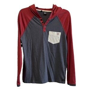 Volcom Long Sleeve Hooded Henley T-Shirt Young Men’s Size Small Lightweight