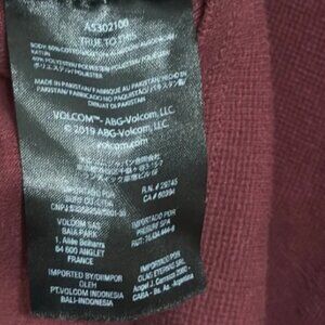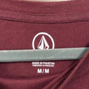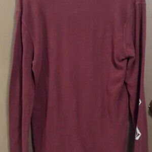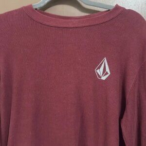 Stylish maroon long sleeve shirt featuring a distinctive logo design on the front and sleeve.
