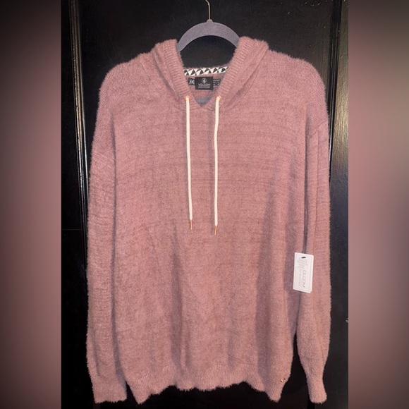 Soft knit sweater with drawstring hood. Very soft