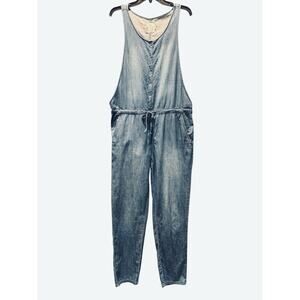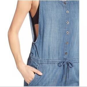 Volcom Medium (12) Blue Painterly Chambray jumpsuit pockets blue sleeveless