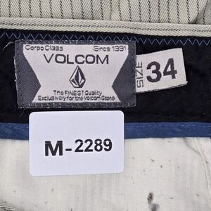 Volcom Men Shorts 34 Beige Pinstripe Logo 10.5" Inseam Cotton Polyester Pockets