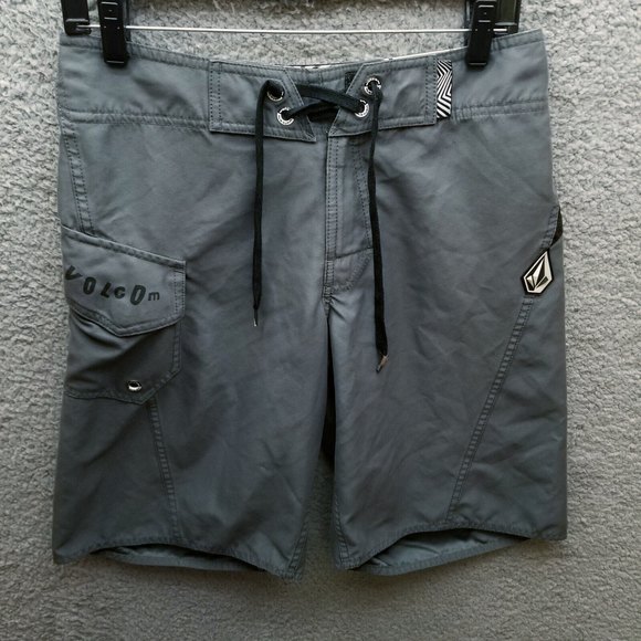 Volcom Men's 29 Gray Board Shorts Swimwear 100% Polyester 30" 10.5" 10.25"