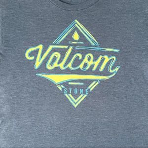 Blue tee with yellow Volcom graphic