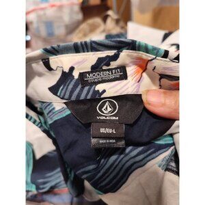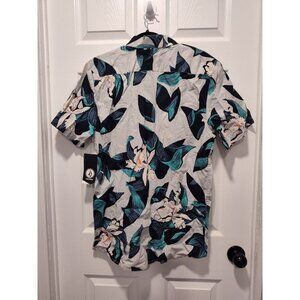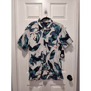 Volcom Mens Cut out Modern fit Short Sleeve Button-Up LARGE Blue Green Floral