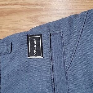 Welt and button welt back pockets. Volcom stone logo embroidery at back of left leg