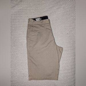 Classic khaki shorts with a flat front design. Ideal for everyday wear. Versatile and comfortable.