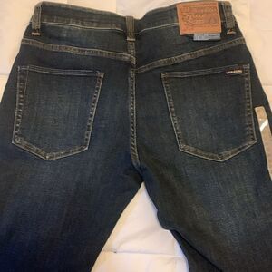 Classic straight fit. Dark blue denim. Stylish and versatile.