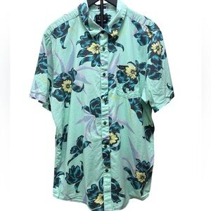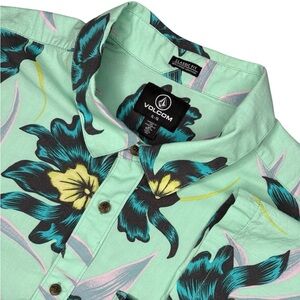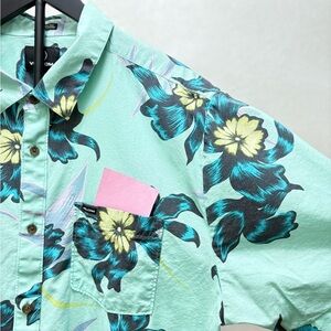 Volcom Men’s Teal Floral Island Time Classic Fit Short Sleeve Pocket Shirt | XL