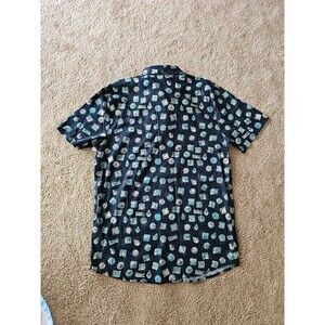 Volcom Men's Warbler Short Sleeve Button Up Cotton Shirt Black Print Size Medium