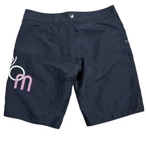 Volcom Miss Mod Sz 9 Board Shorts Black Embroidered Graphics Surf Swim Y2K