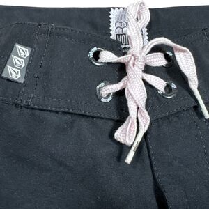 The Volcom Miss Mod Sz 9 Board Shorts in black are a stylish choice for women looking for a comfortable and functional swim or surf garment. Made of 100% polyester, these strapless board shorts feature embroidered graphics with a logo accent. Perfect for beach outings or outdoor sports activities, these machine washable shorts come in a juniors' size with a classic black color and a sporty design. With pockets for convenience and a focus on nature and outdoor themes, these Volcom board shorts are a versatile addition to any woman's swimwear collection.