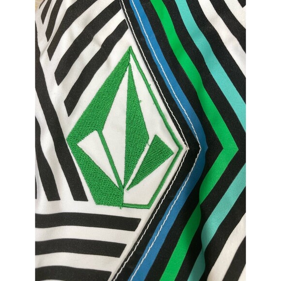 Volcom Mod Tech Mens Board Shorts Sz 34 White & Black Stripe Zip Fly Embroidered