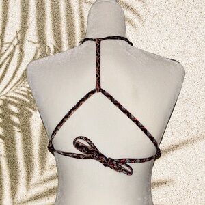 Vibrant bikini set featuring a striking geometric pattern. Perfect for making a statement at the beach or pool.