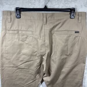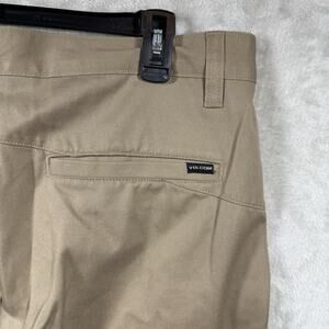 Volcom NEW Vmonty Chino Pants Mens 38 Khaki Brown Modern Fit Logo Button Zipper Closure Preppy Slash Pockets Flat Front