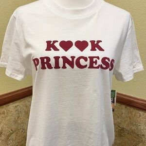 Volcom NWT T Shirt Outer Banks X Netflix OBX Women’s Tee, White, Kook Princess, Size Medium. New With Tags. Underarm to underarm measures approx 18.75” across.