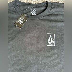 NWT Volcom black unisex short sleeve t-shirt with bold design on back.
