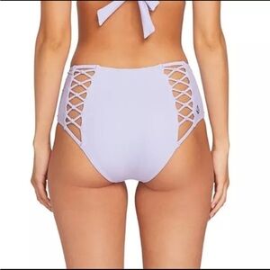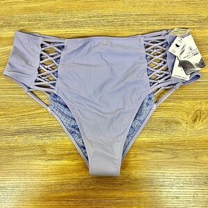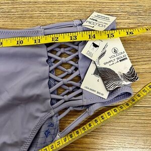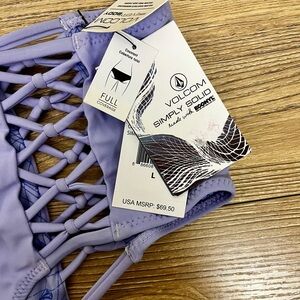 Volcom NWT Women’s Solid Lattice Cutout Bathing Suit Bikini Bottom L Violet