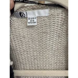 Volcom Navy Cream Stripe sweater button acrylic women's cardigan Sz XS/small