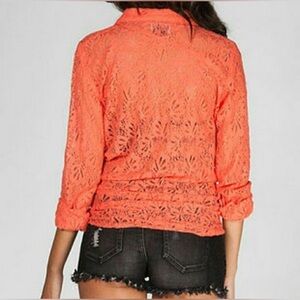 Volcom Orange Coral Peach floral Lace crochet knit Button down top small NWT