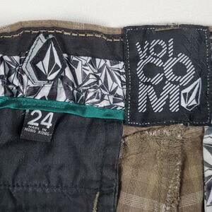 Volcom Plaid Checkered Cargo Board Casual Shorts Button Pocket Skater Teen/Youth Size 24