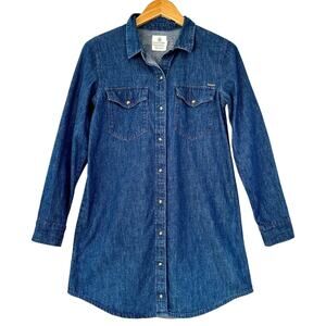 Volcom Pearl Snap Western Denim Mini shirt Dress blue jean rodeo festival Small