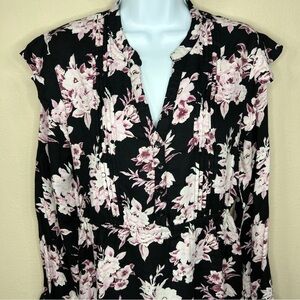 Volcom Pink Black Floral Dress Long Sleeve Ruffle Lightweight Tunic Top Large
