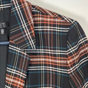 Stylish Volcom plaid blazer. Perfect for layering. Adds flair to any outfit.