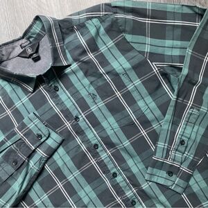 Volcom Button Up Shirt Grey Green Plaid Modern Fit Men’s Large
