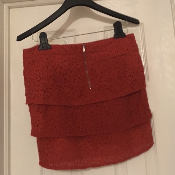 Volcom - Red Lace Mini Skirt - 3 Layers, Lined, Zipper Back Closure, Size 3 - Gently Used - Pet and Smoke Free Home.