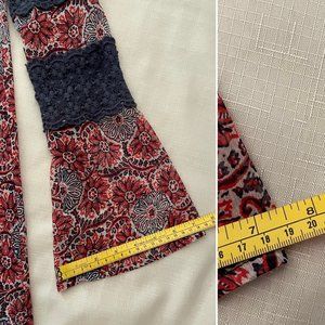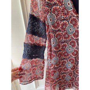 Volcom Red Navy Boho Dress True To This Tunic Cut Out Lace Inset Sleeves Lined,