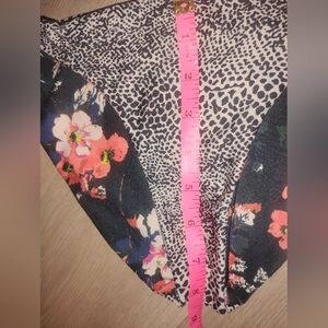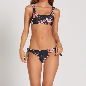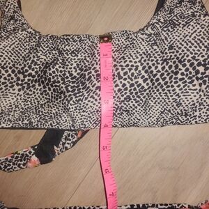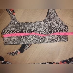no size tags but comparing it w/ other bikinis it seems like it's a medium or large, more like a large. hard 2 measure since top & bottom both tie closed- 4 additional measurements plz ask.