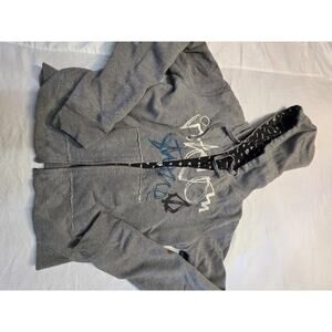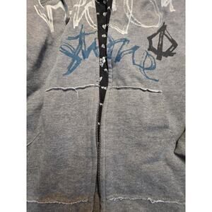 The Volcom reversible men's size medium longsleeve zip up sweatshirt in gray is a stylish activewear piece. Featuring a full zip closure and missing zipper pull, this sweatshirt is perfect for casual wear or workouts. The Volcom brand ensures quality and style, making it a versatile addition to any man's wardrobe.