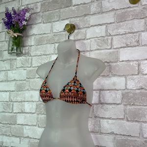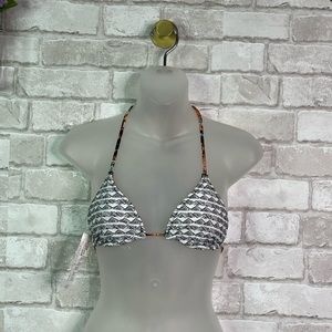 Great condition, no damage. Volcom brand swimsuit top, traditional string bikini style. Reversible - orange pattern on one side, black/white pattern on other side. Women’s size XS.