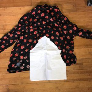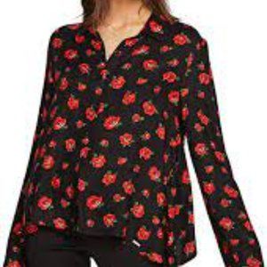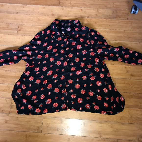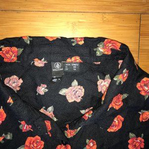 Volcom Monies Grunge Rocker Long Sleeve Button Down Top Black Roses open back