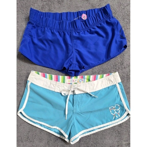 Volcom Roxy Boardshorts Beach Surf Blue Low Rise Swim Womams Sz 3/M Y2K
