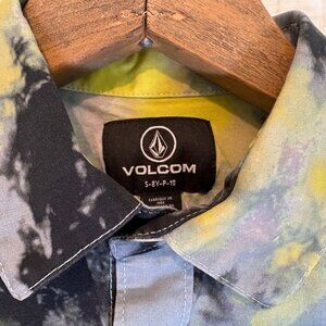 Volcom Saturate Short Sleeve Shirt Lime Tie Dye Blue Boys 8