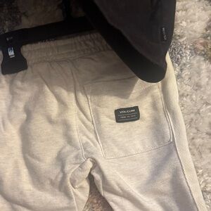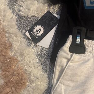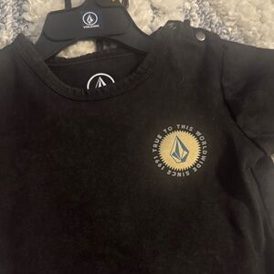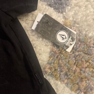 Comfortable Volcom set with a black tee and gray joggers. Ideal for casual outings.