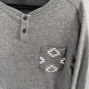 Volcom Shirt Mens Medium Gray Henley Tshirt Long Sleeve Crewneck ThickAztec