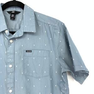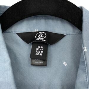 Volcom Short Sleeve Button Front Shirt Boys Size XL Blue Dot Print Collared