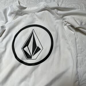 Volcom short sleeve rash guard swim shirt in white. Play condition for spots. Size 2T.