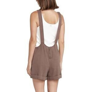 Volcom Shortalls Women Small Brown Overalls Romper Shorts Beach Surf